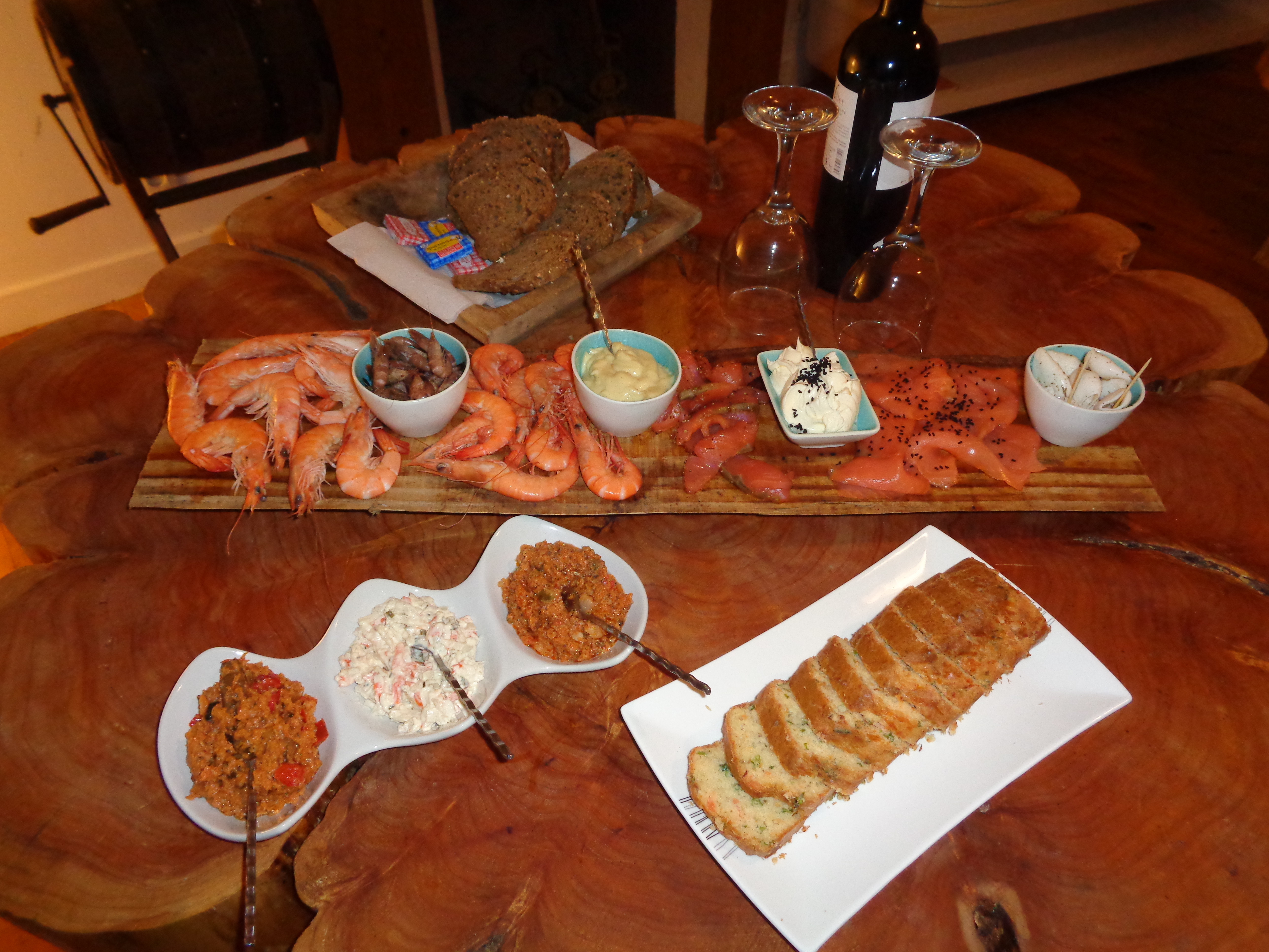 Côté mer : Terrines poissons, toasts, cake salé, crustacés